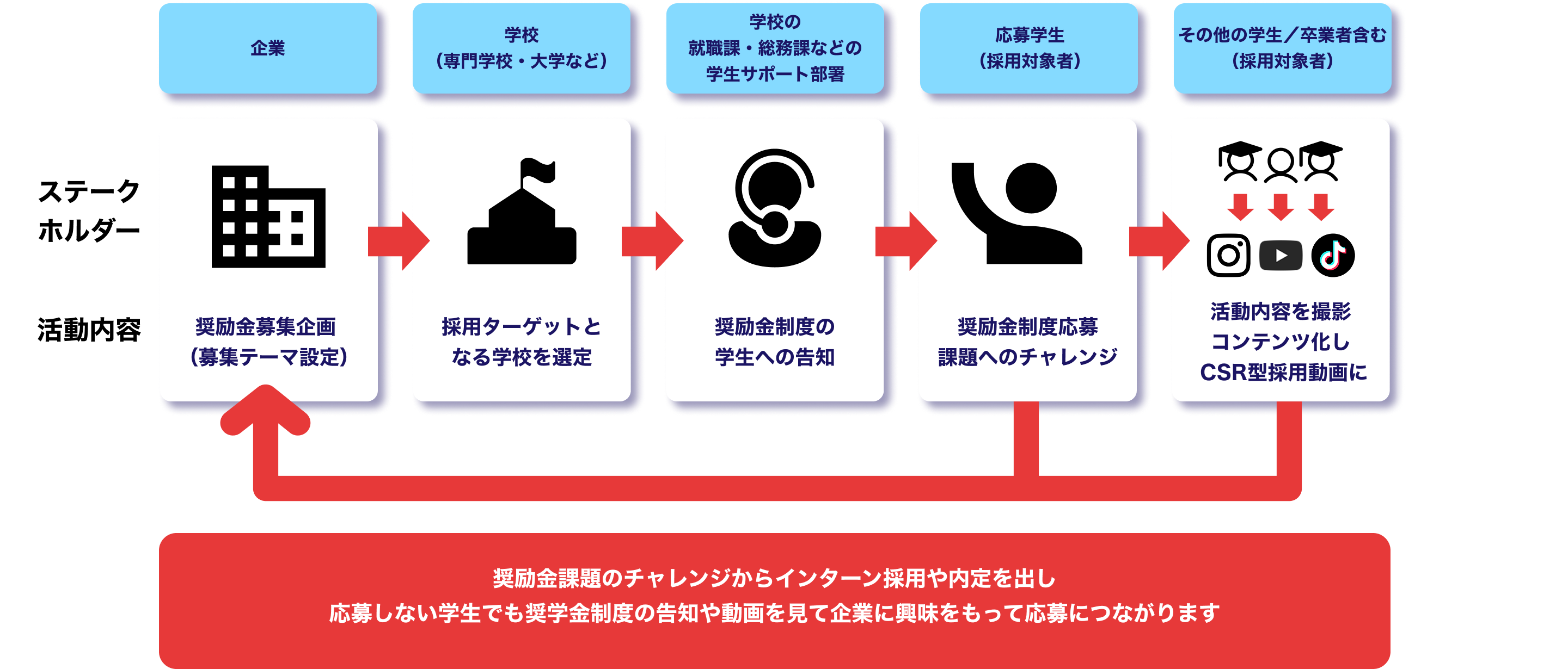 - 奨励金(奨学金)制度を通じて学生に自社を知ってもらい新卒からの応募を強化!